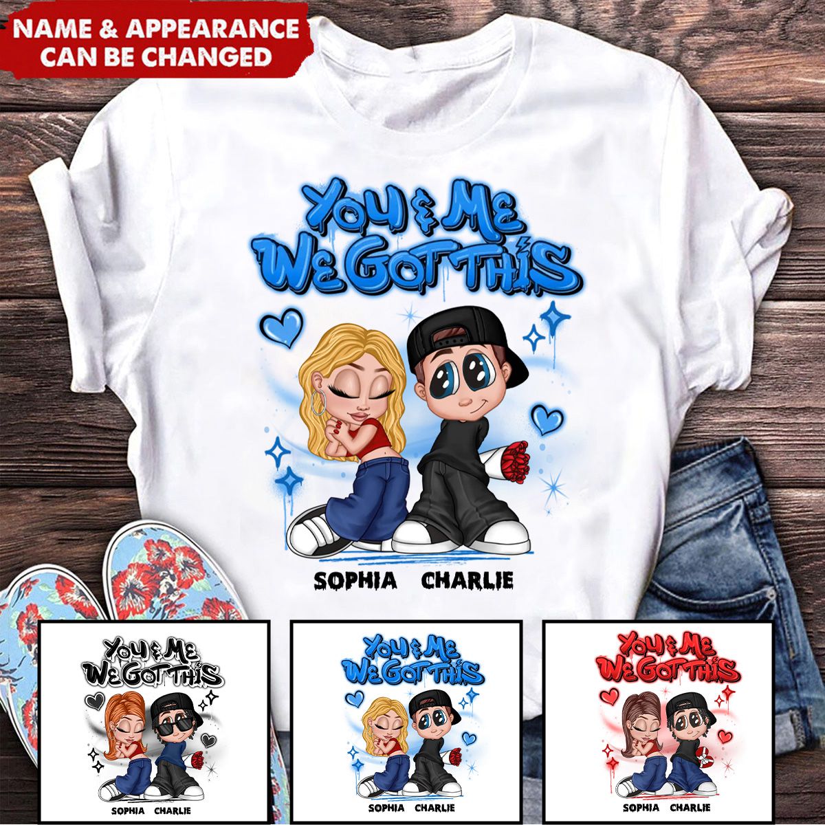 Y2K Couple Airbrushed Personalized Shirt - Gift For Him Gift For Her
